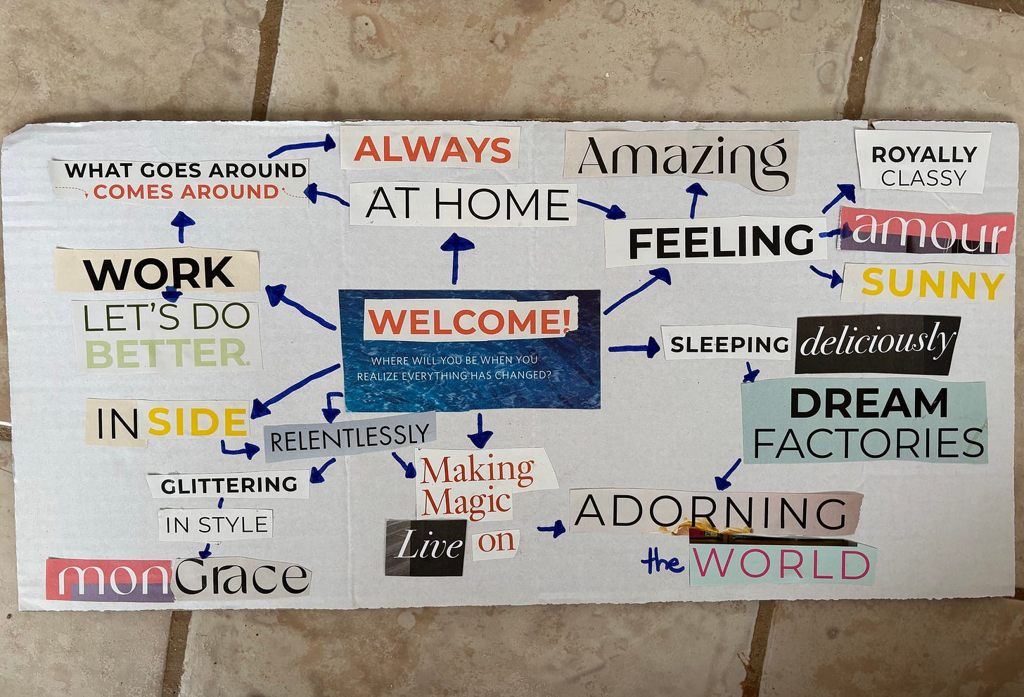 You could also just do this in writing with words - pen and paper - but I enjoyed the act of cutting and gluing and using the words from the magazines.